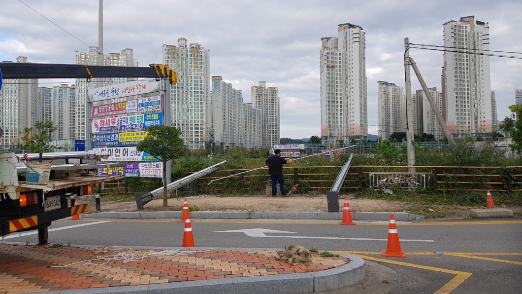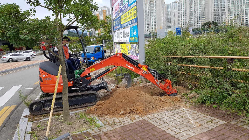 현수막게시대 이설(신대 사거리) 작업 사진입니다.