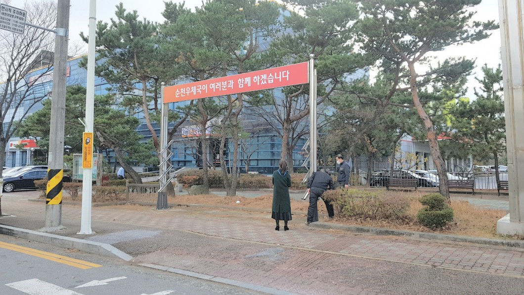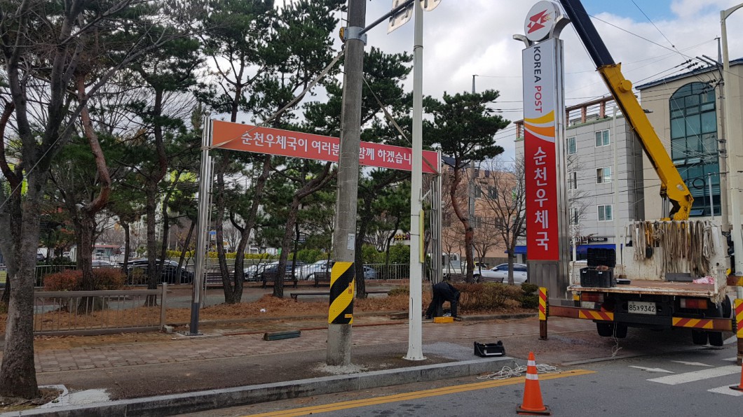순천 우체국 접철식 게시대 제작설치 작업 사진입니다.