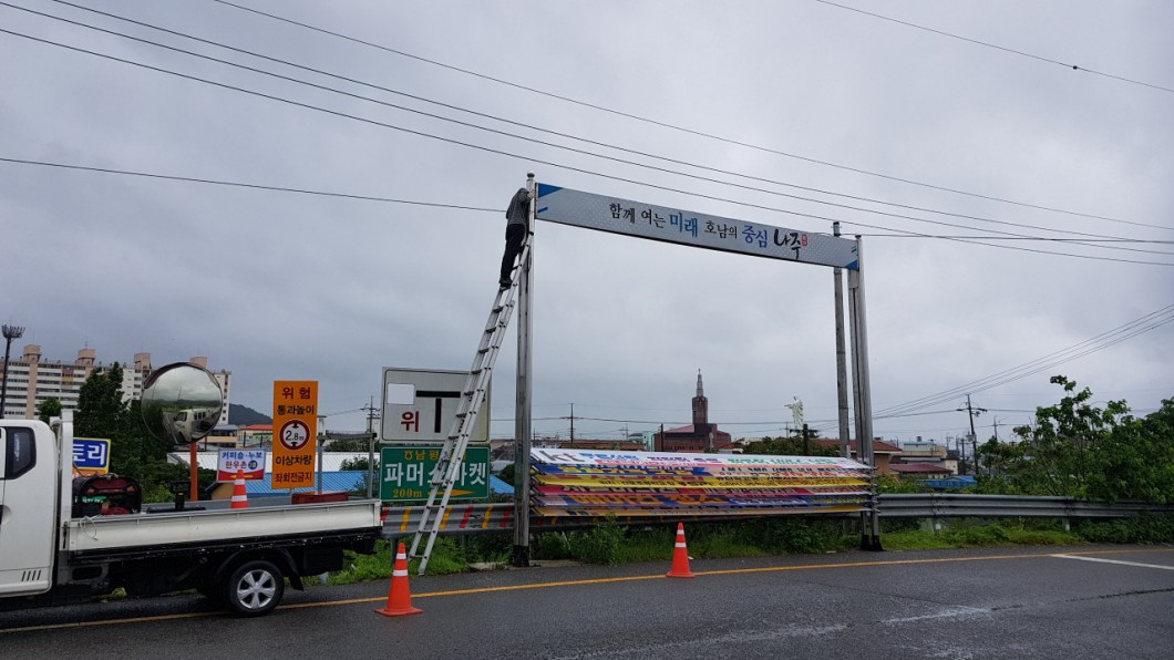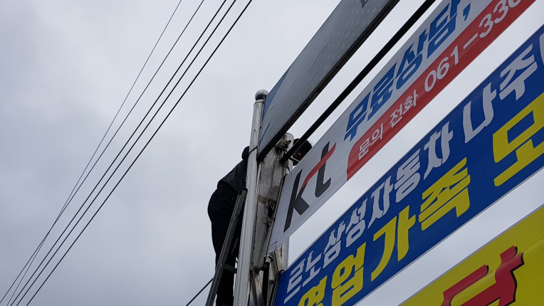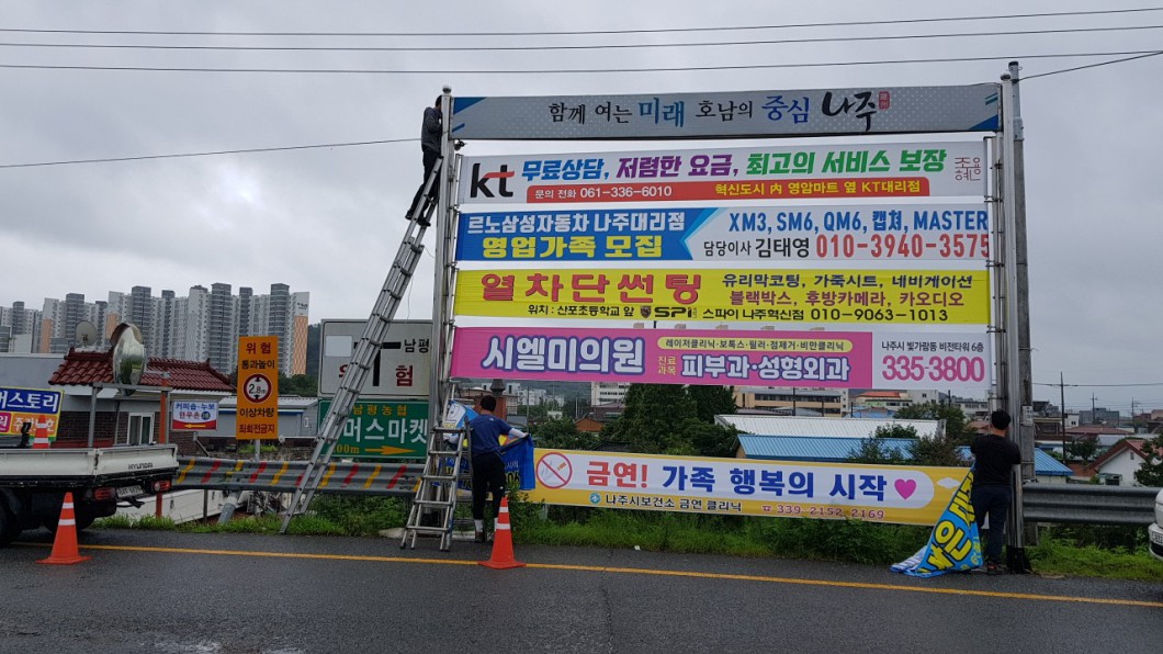 나주 중앙교 삼거리 접철식 게시대 A/S 작업 사진입니다.