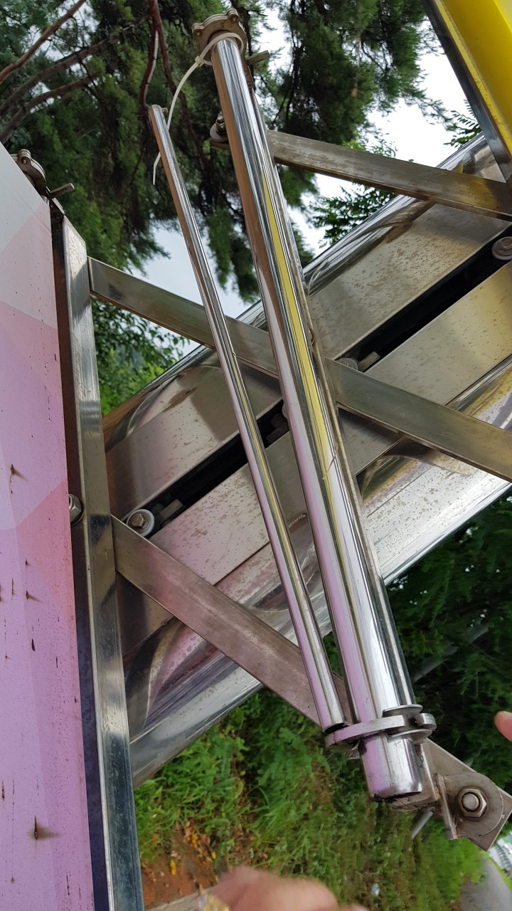 현수막을 감아주는 보조봉의 용접부위가 터져있어