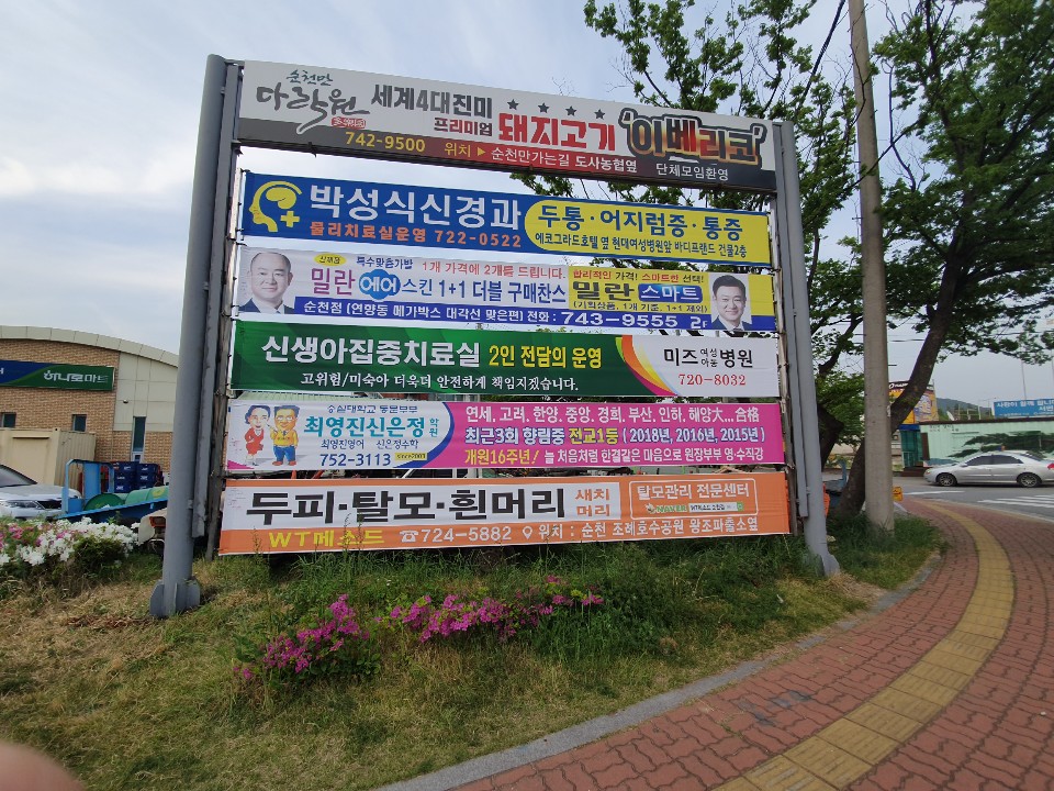 순천 선평삼거리 게시대 보수 작업 사진입니다.