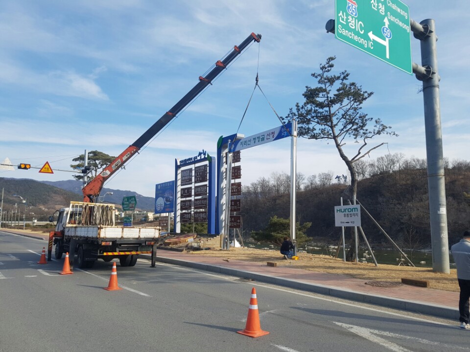 산청군 접철식 현수막게시대 시공 전,중,후 사진입니다.