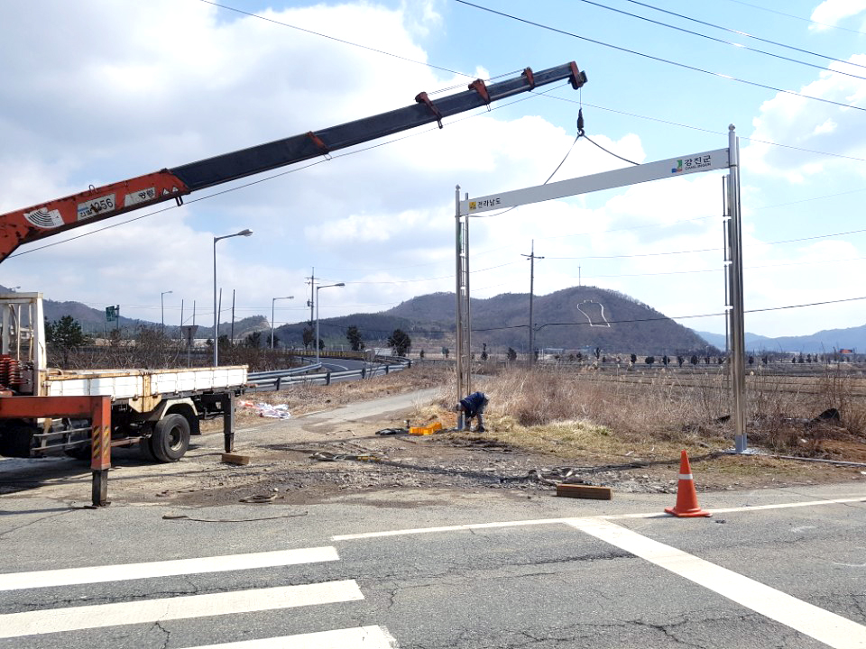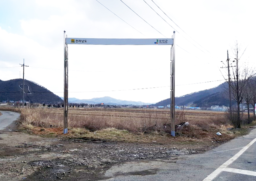 강진군 접철식 현수막게시대 시공 전,중,후 사진입니다.