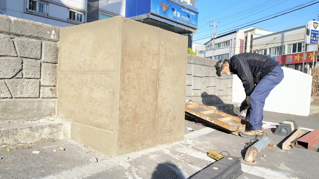 광영동 파출소 앞 디자인 게시대 제작 설치 작업 사진입니다.