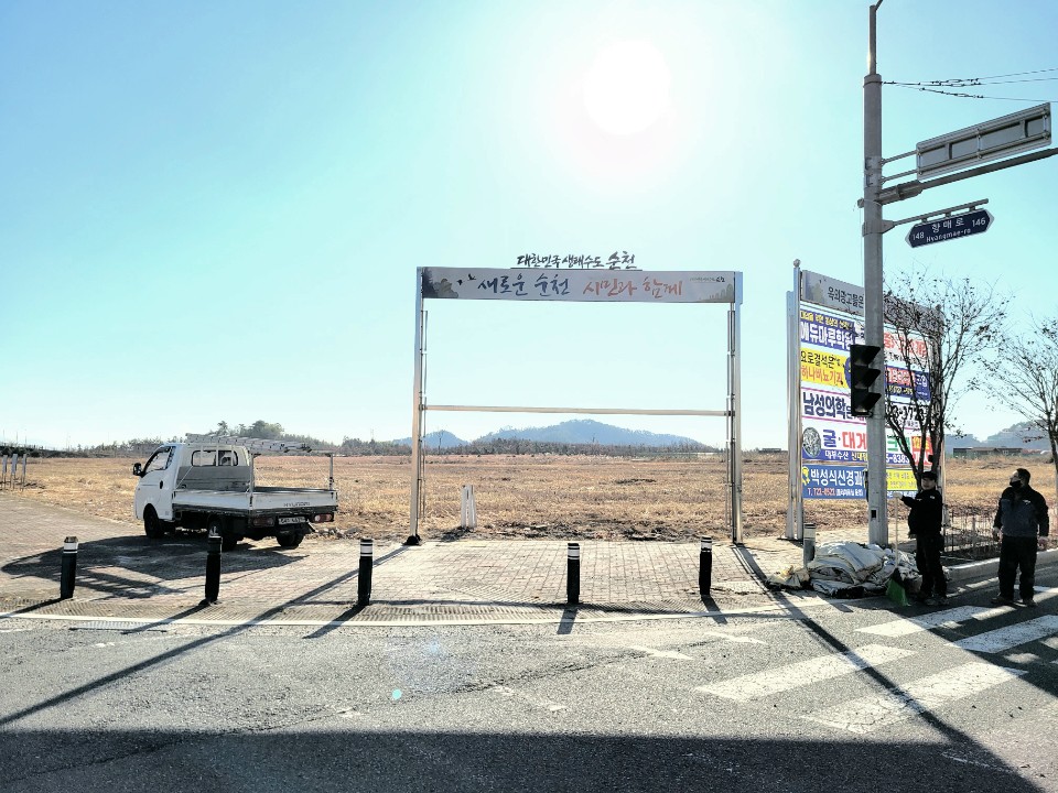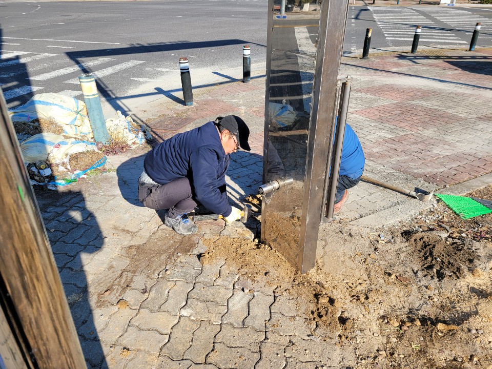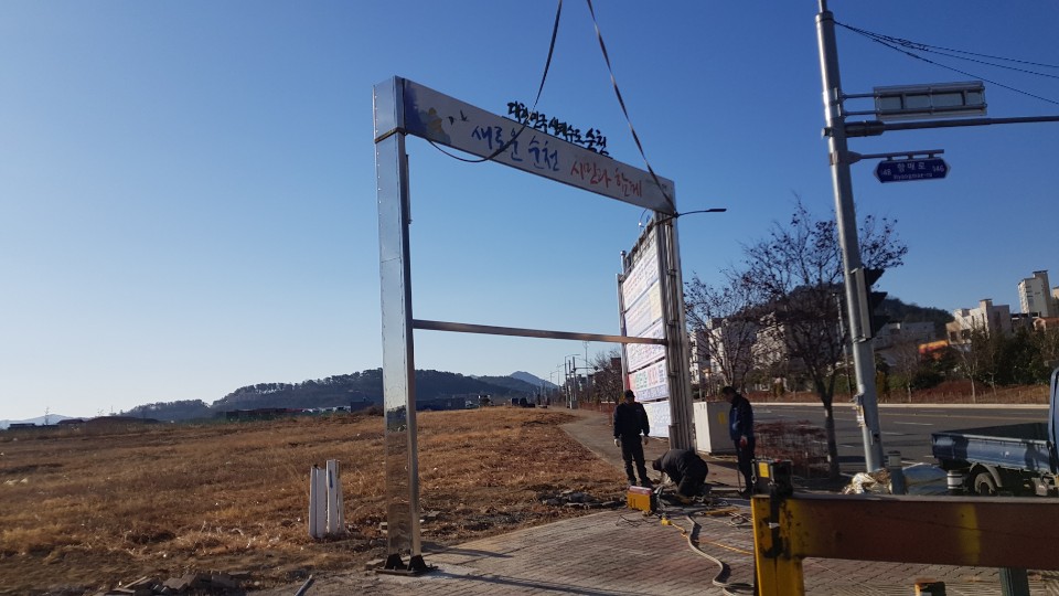 순천시 신대지구 게시대 이설 작업 사진입니다.