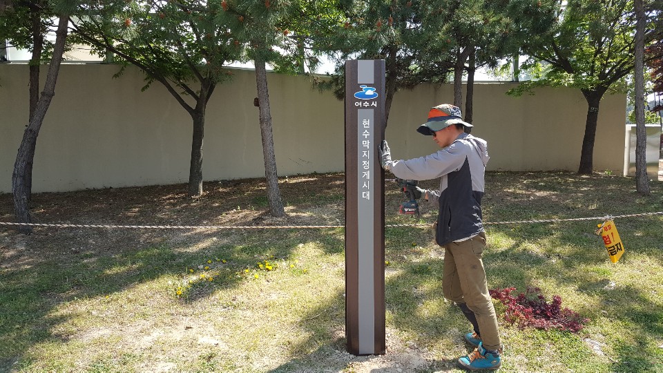 여수 저단형 게시대 제작 설치 작업 사진입니다.
