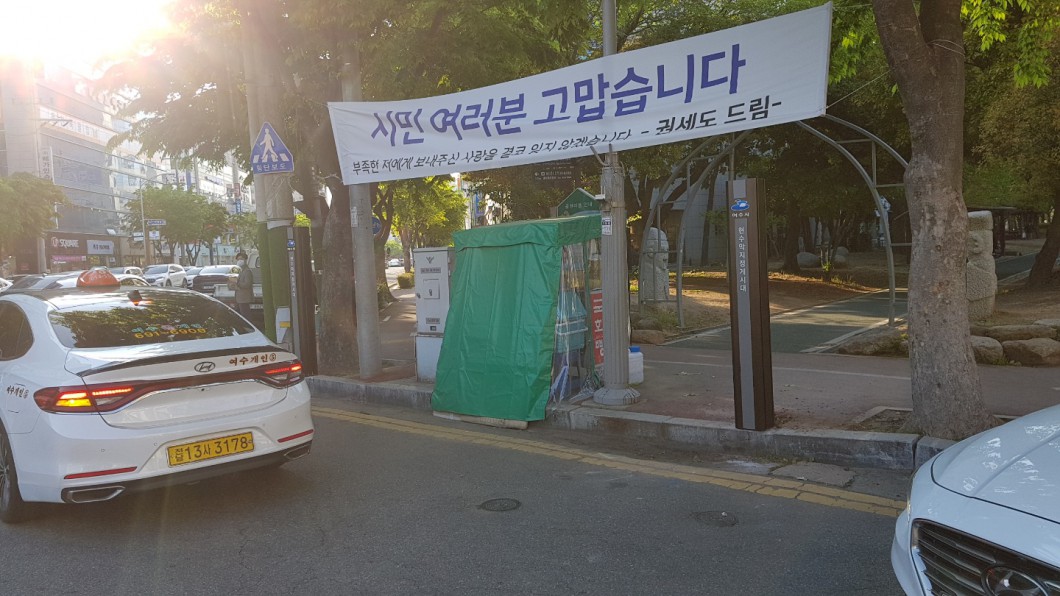 화면에는 여수시의 로고와 현수막게시대 문구가 들어갔으며