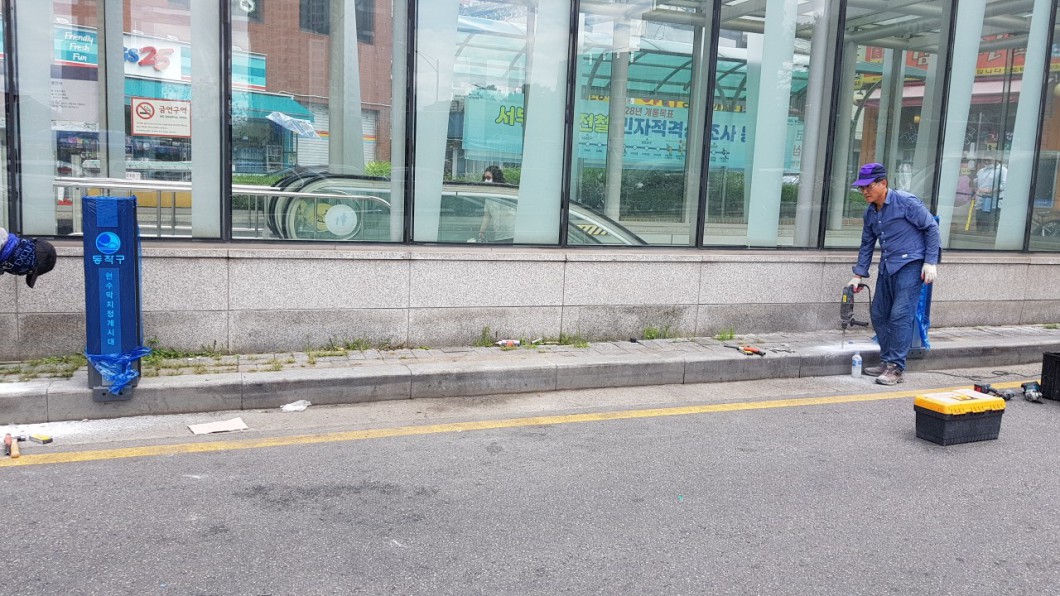 동작구 저단형 게시대 시공설치 작업 사진입니다.