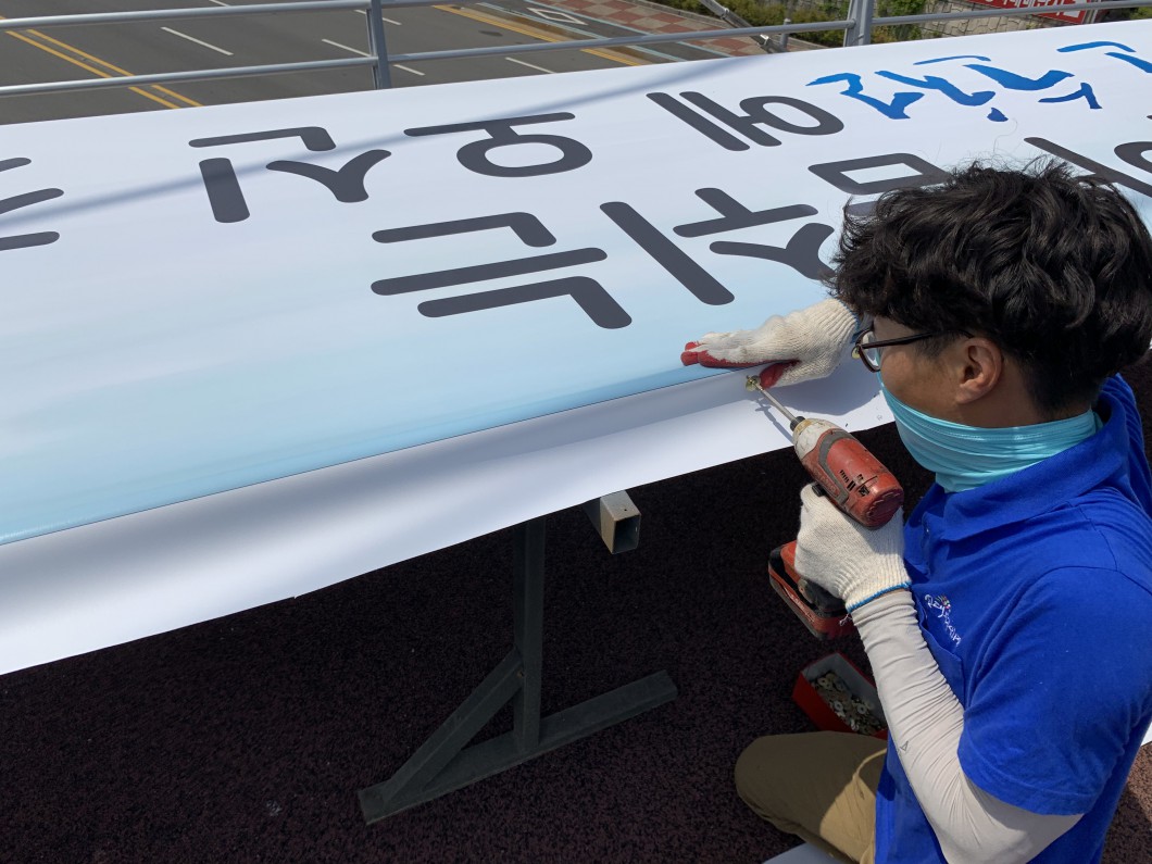 2019 순천 방문의 해 육교홍보간판 제작설치 작업 사진입니다.