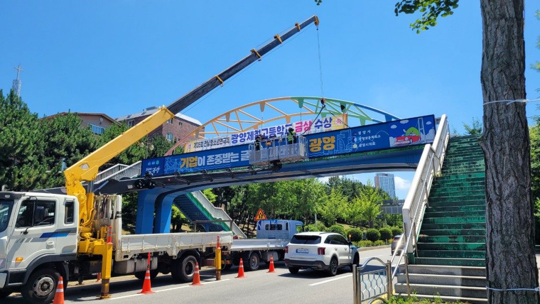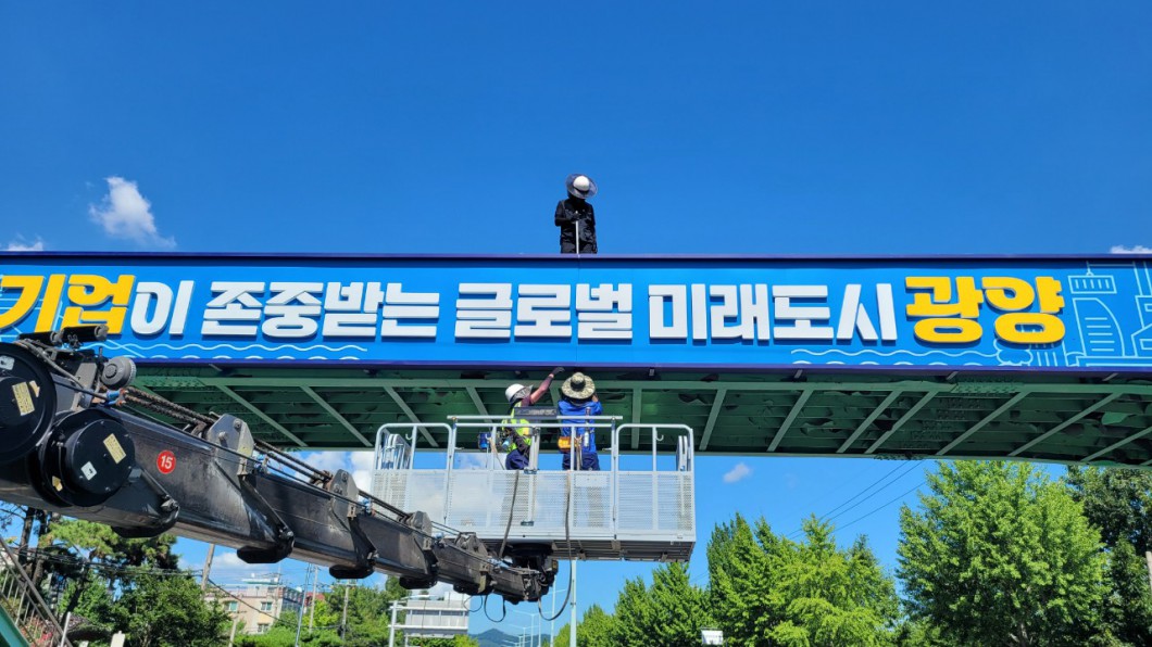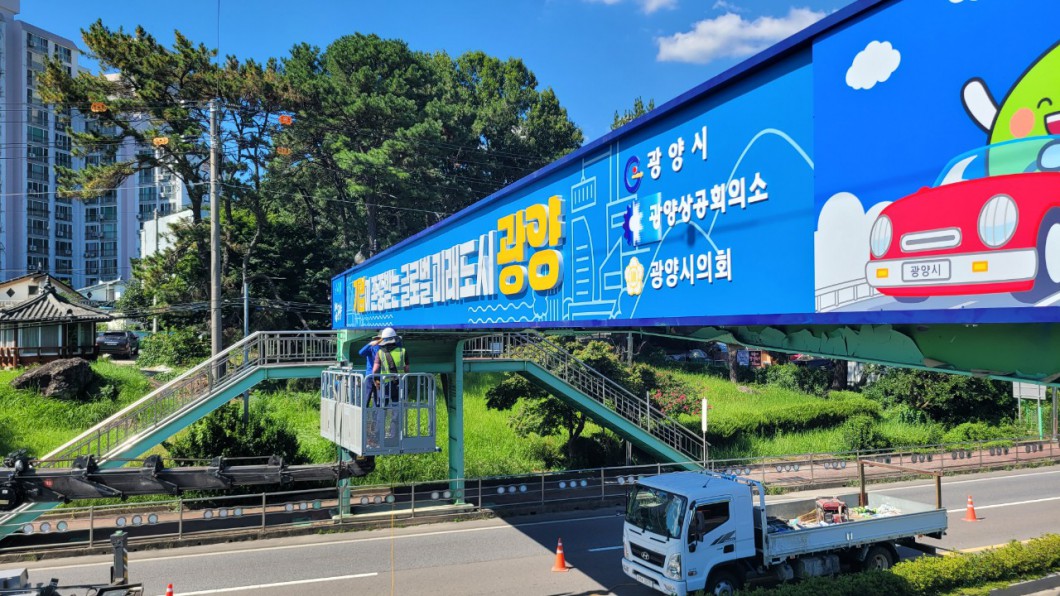 광양 육교 현판 제작, 작업 사진입니다.