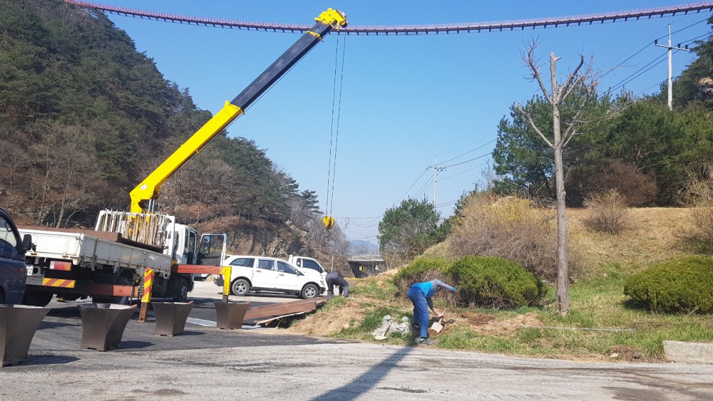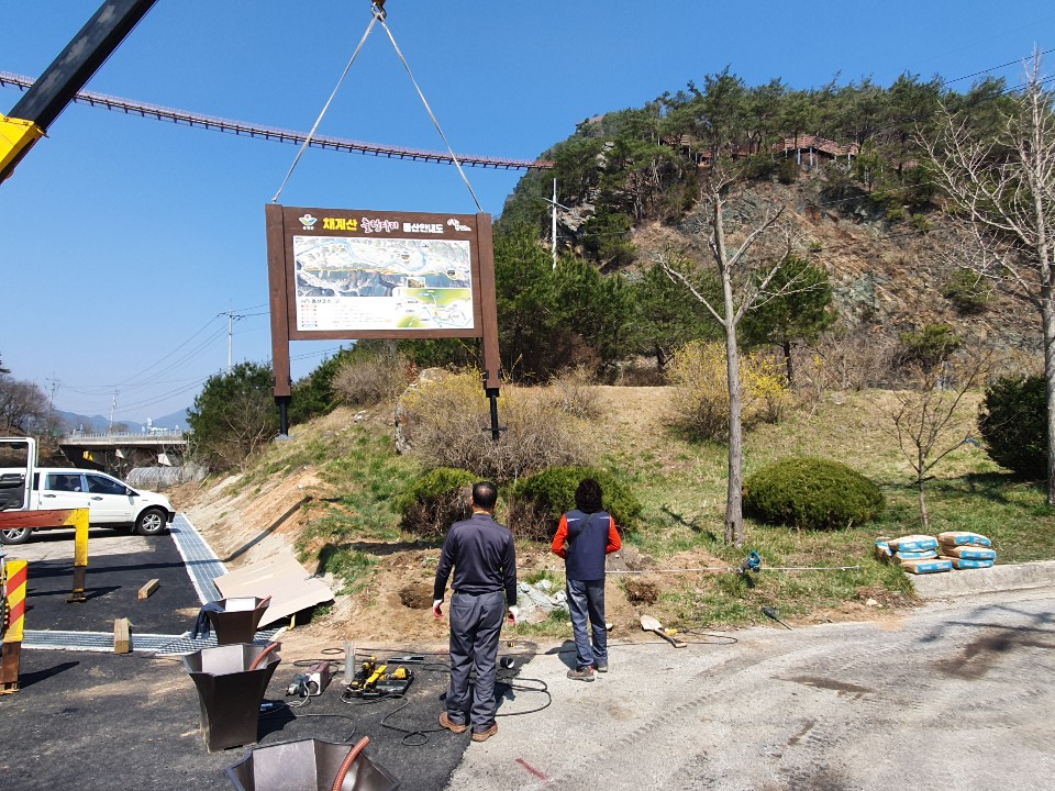 순창 채계산 출렁다리 등산안내도(매립형) 작업 사진입니다.