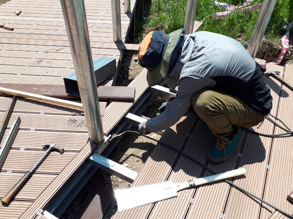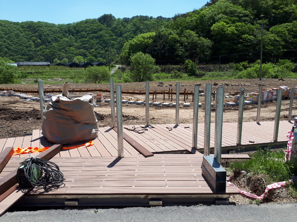 현장은 아직 조성중이었고 데크하부에 고정을 해 달라고 하셔서