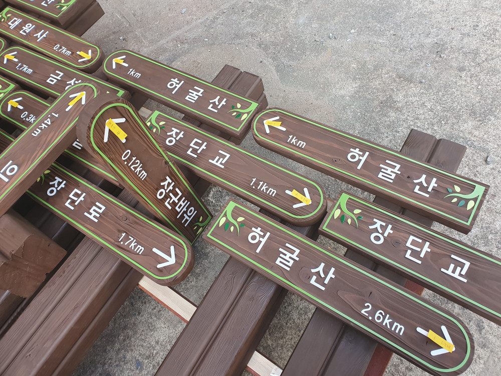 함안 나무이정표/방향표지판 제작 작업 사진입니다.
