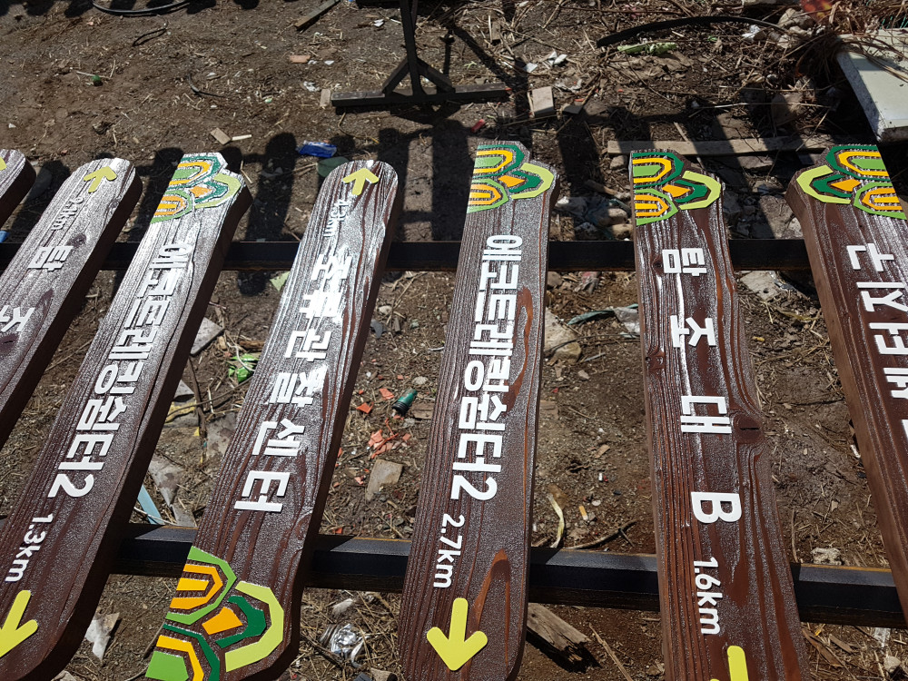 해남 고천암 자연생태공원 방향이정표 작업 사진입니다.