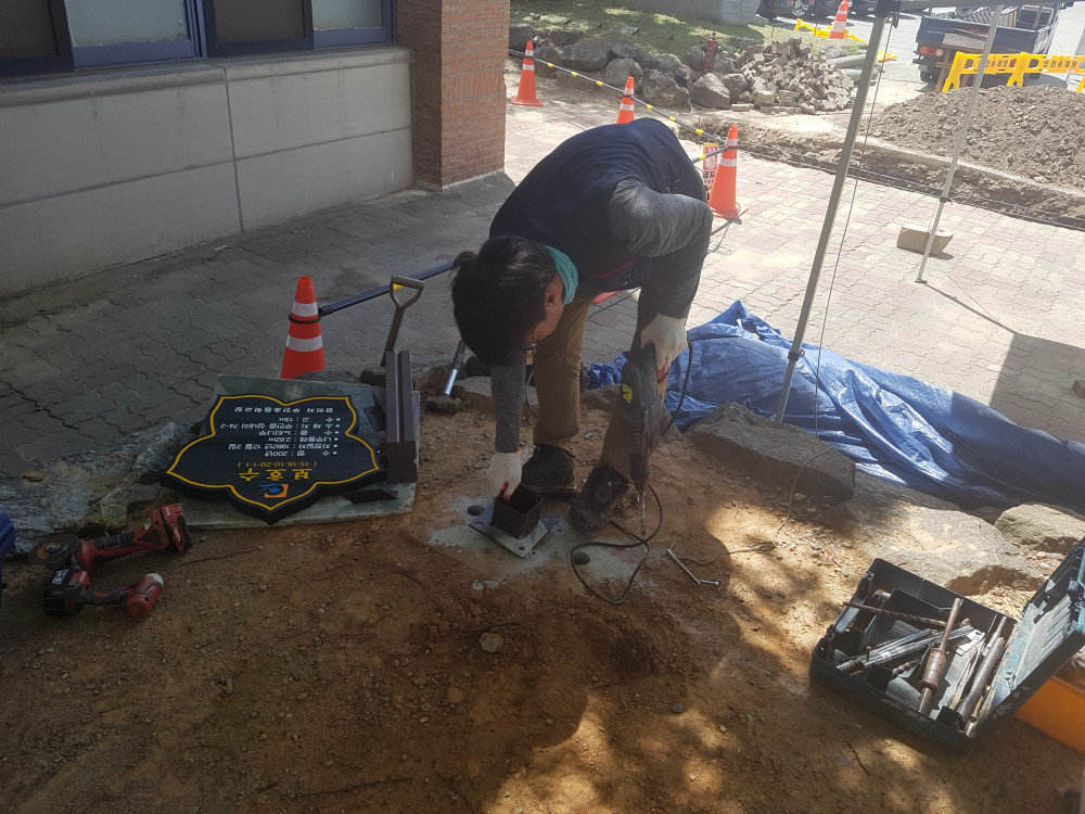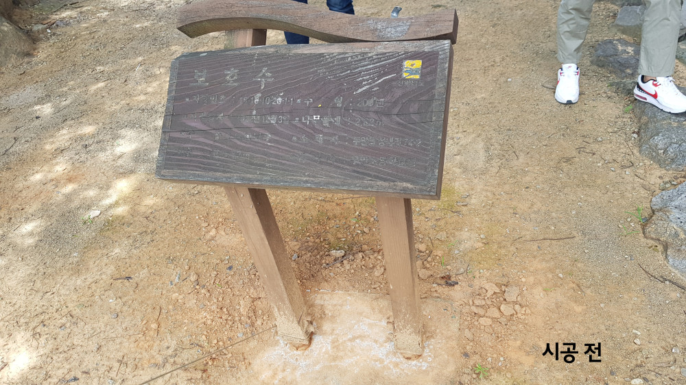 무안 보호수 나무안내판 교체 작업 사진입니다.