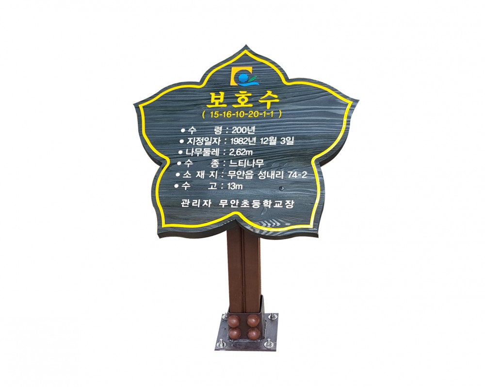 기존 보호수 안내판이 많이 낡아서 무안초등학교를 상징하는 무궁화 모양의 예쁜 보호수 안내판으로 교체했습니다.