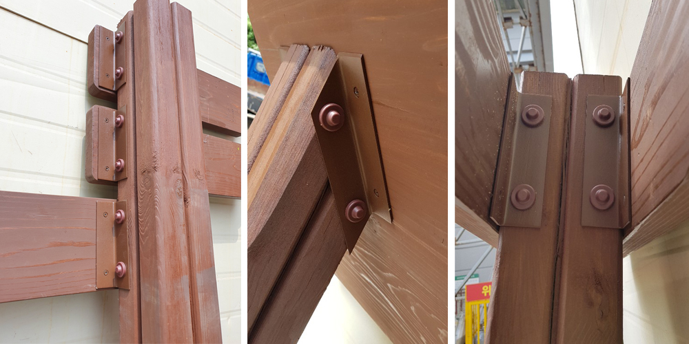 기둥과 판의 연결은 앵글을 사용해서 깔끔하면서 단단하게 고정되어 나갑니다.