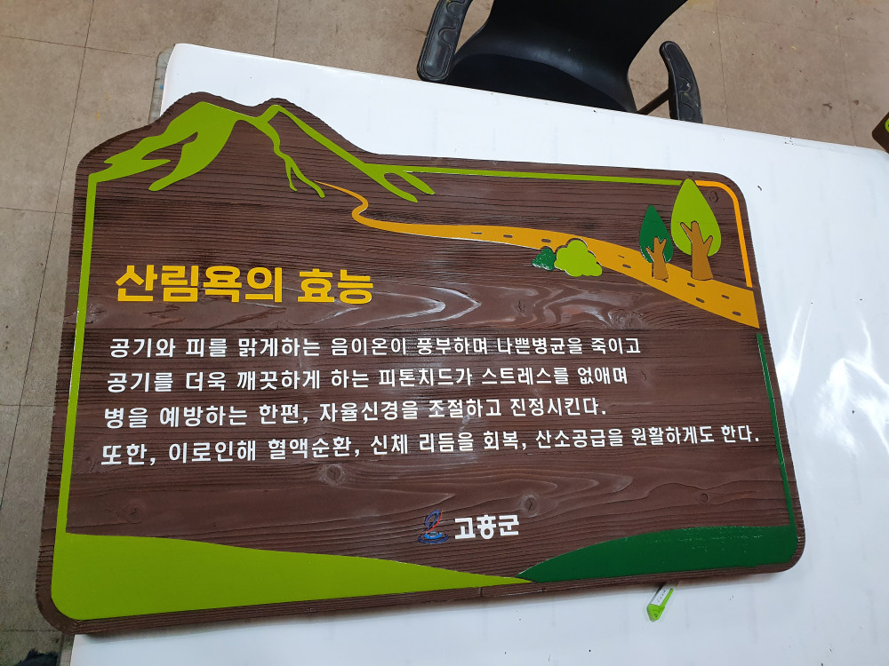 고흥 관광코스 나무간판/안내판 제작 작업 사진입니다.