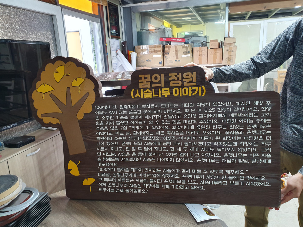 (순천) 중앙동 이야기 안내판 페이지 정보 작성자 신대디자인 댓글 0건 조회 1,961회 작성일 20-02-28 10:02 본문 중앙동 이야기 나무안내판 제작 작업 사진입니다.디자인부터 설계, 집성, 샌딩, 채색 등전 과정을 신대디자인에서 진행 합니다. 목록 답변 이전글(순천) 경로당 현판 제작 20.02.28 다음글(무안) 공원 나무안내판 제작 20.02.27 댓글목록 댓글목록 등록된 댓글이 없습니다.