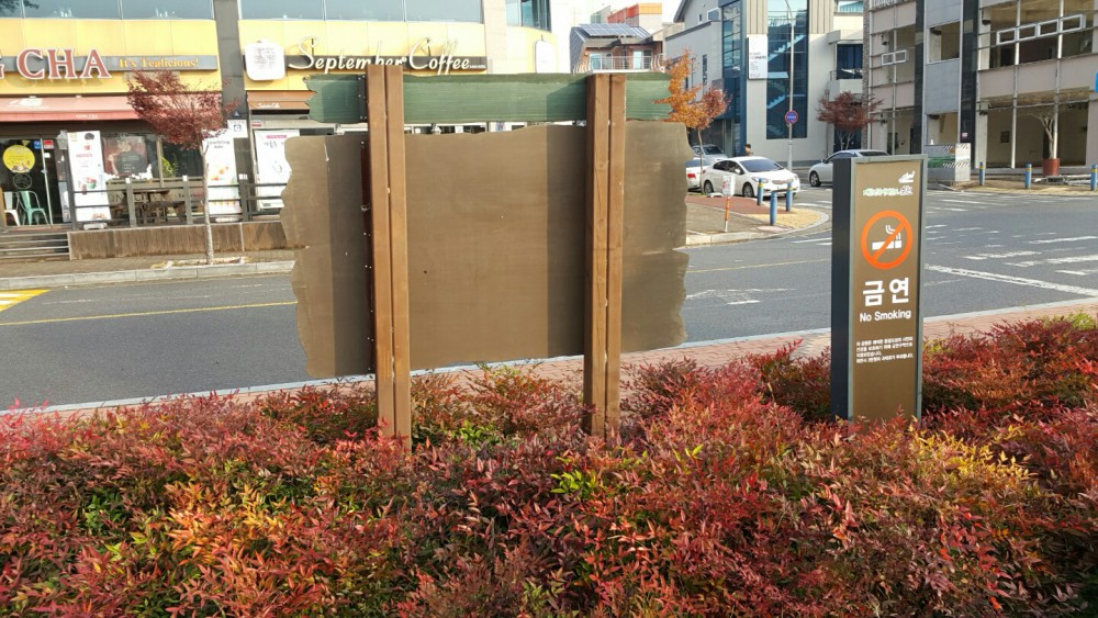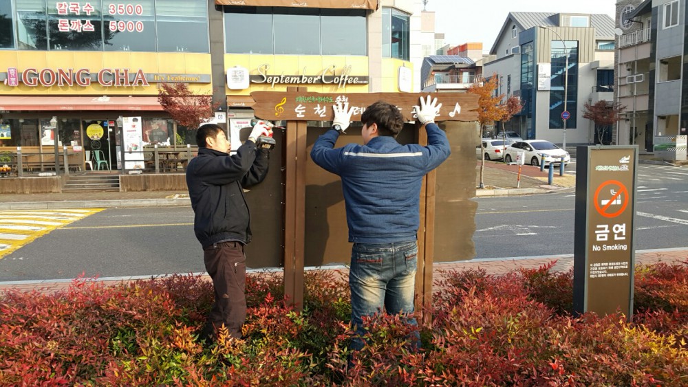 순천시 조례호수공원 안내간판 정비사업 작업 사진입니다.
