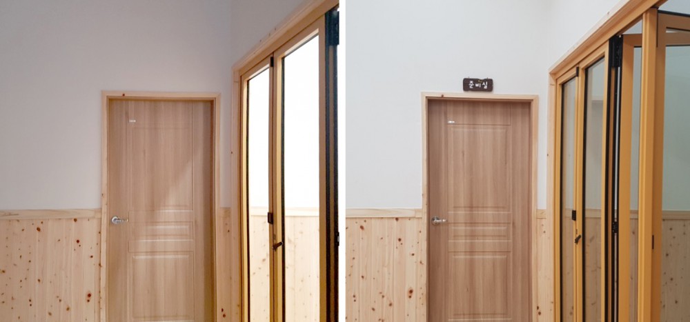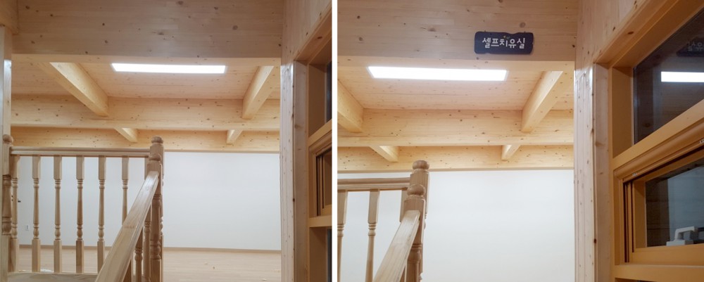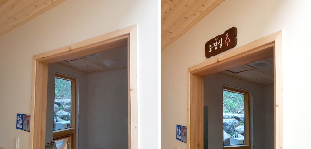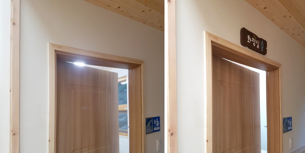 원목으로 지어진 예쁜 건물에 맞게 깔끔한 나무표찰로 포인트를 주었습니다.