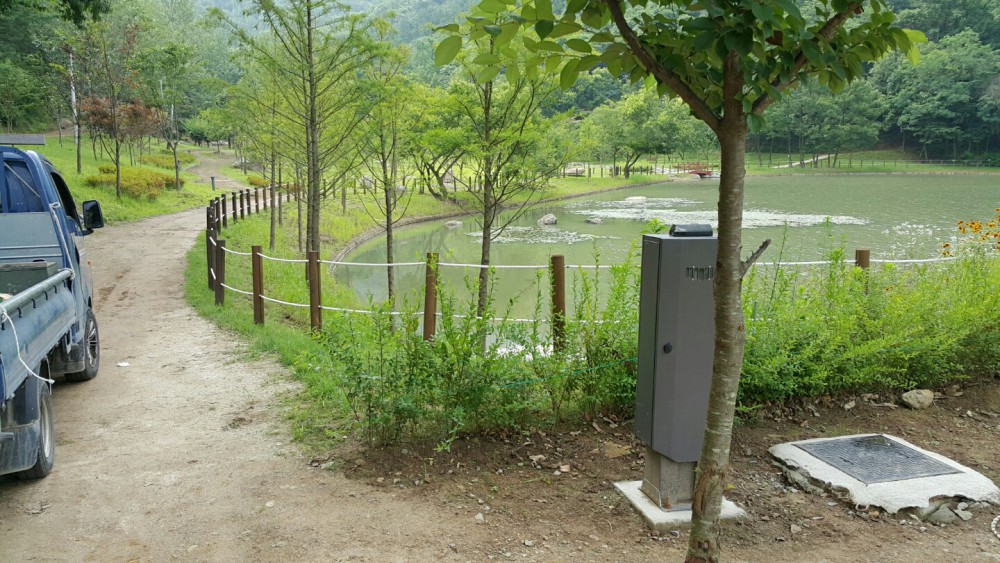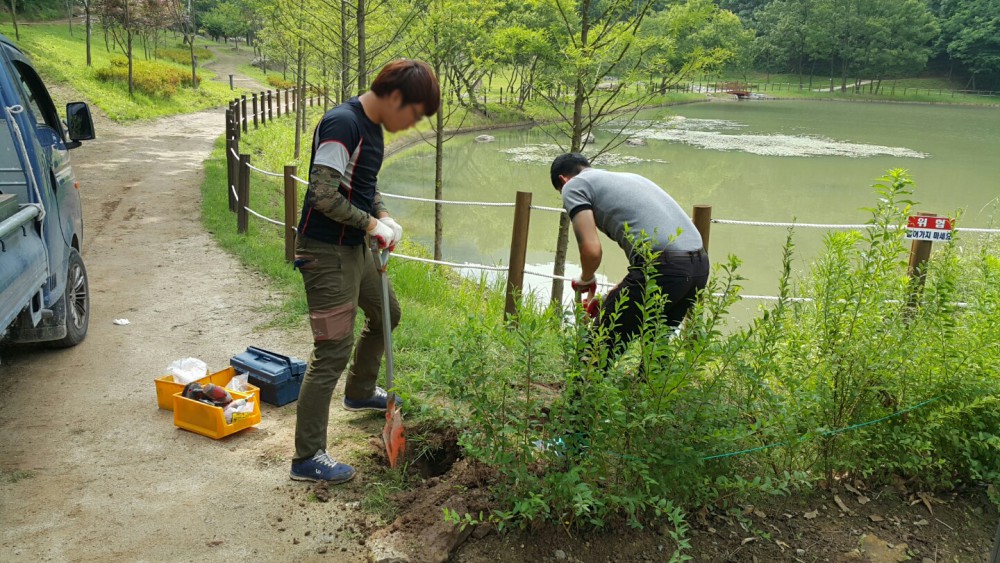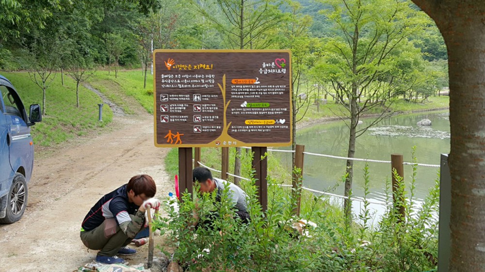 순천시 대주피오레 뒷편 저수지 나무안내판 작업 전,중,후 사진입니다.