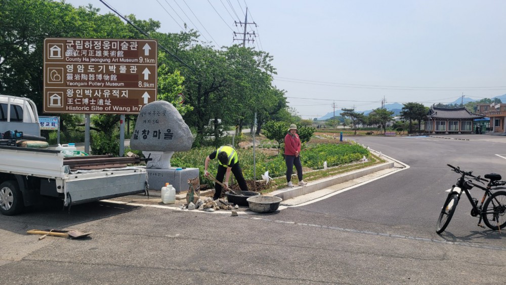 (영암) 월창마을 나무간판 작업 사진입니다.