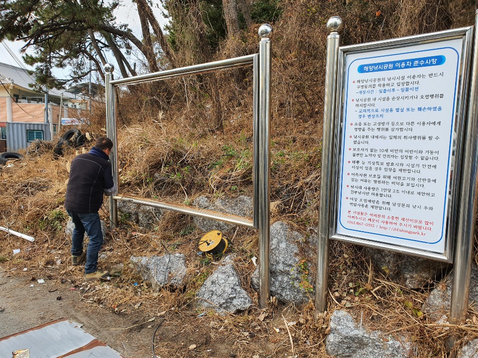 장흥 정남진 해양 낚시공원 안내도 화면교체 작업 사진입니다.