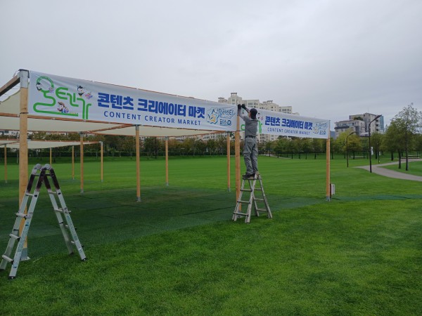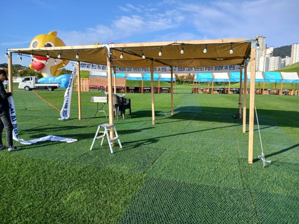 순천 올텐가 행사 부스 현수막 작업 사진입니다.