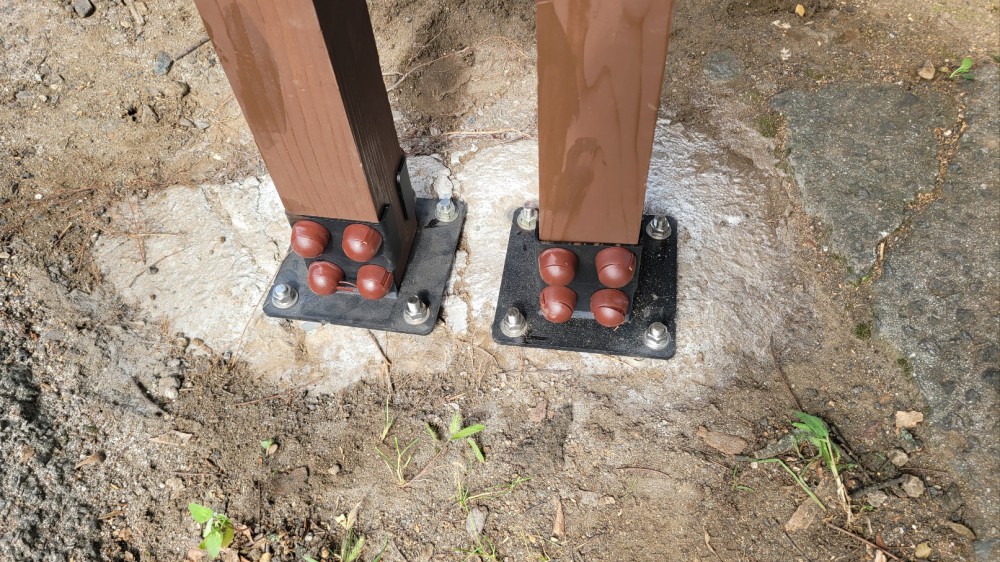 콘크리트 기초 위에 앙카 볼트를 시공한 후, 간판 기둥을 고정해 안정성을 확보했습니다.