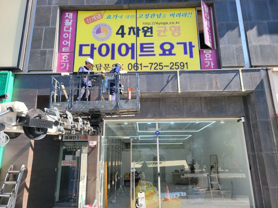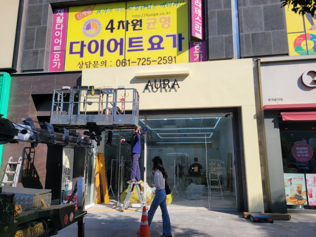 베이지톤 알루미늄 파사드 + 블랙 스카시 입체 사카시 간판으로 제작해